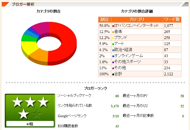 自分のブログの記事をカテゴリ分けして円グラフで表示して、